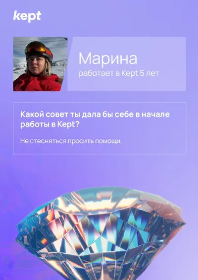 Классно, когда в компании ты не только получаешь опыт, но можешь профессионально расти и развивать свои компетенции на протяжении многих лет😎 В Kept есть программа GEMS - каждый год мы поздравляем и