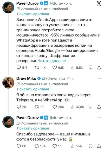 🍆 🍑 Отправлять нюдсы только через Telegram советует Павел Дуров Именно в этом мессенджере они надёжно защищены, уверен основатель Telegram.