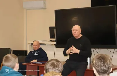 Продолжаем Олимпийские уроки, посвященные 115-летию Российского Олимпийского комитета В СШОР по футболу «Зенит» в гости к ребятам пришел олимпийский чемпион по конькобежному спорту, Заслуженный маст