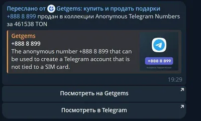 💎На GetGems продали короткий анонимный NFT-номер +8888899 🎁PRICE: 461,538 TON (~$604.61К)