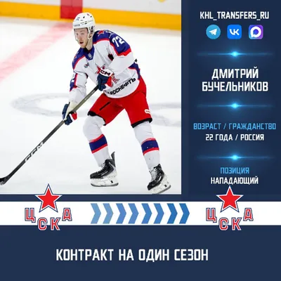 💥ОФИЦИАЛЬНО! Нападающий Дмитрий Бучельников продлил контракт с ЦСКА на один сезон.