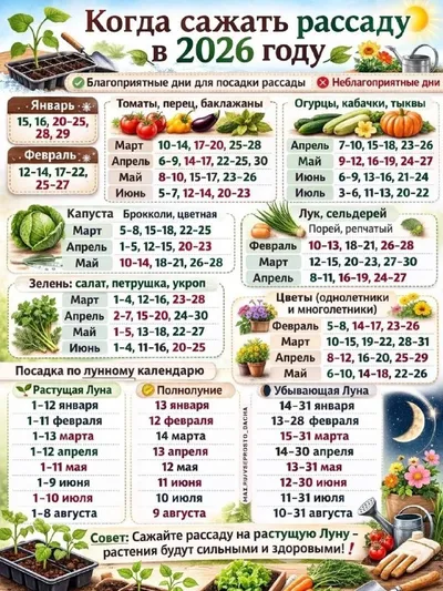 Когда сажать рассаду в 2026 году — удобная шпаргалка для огородников Чтобы рассада выросла крепкой, здоровой и дала хороший урожай, важно выбрать правильные дни для посева. На этой шпаргалке собраны
