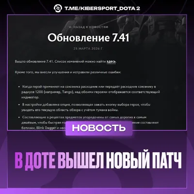 🥺 Новый патч уже в Доте Valve выпустили патч 7.41: 🟢 Все аспекты были удалены из игры 🟢 Терзатель был изменен: Изменено место первого появления Unyielding Shield: базовое поглощение урона увеличе