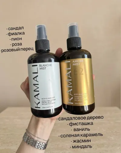Моя находка - мисты от kamali 🤍 какие приятные, ненавязчивые, но при этом стойкие прям) на весну и лето - идеально))) можно сделать кучу пшиков и все равно не переборщишь) Номер 62 - моя любовь