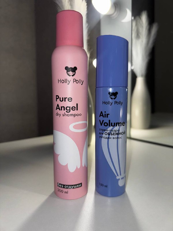 Всем привет♥️ Хочу познакомить вас со своими незаменимыми помощниками для быстрой укладки-сухим шампунем и спреем-пудрой HOLLY POLLY✨ Сухой шампунь: ✨быстро убирает жирность у корней ✨не оставляет