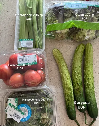 Давайте сравним цены. Бытует мнение, что в Корее очень дорого. Это я купила овощи на салат в магазине у дома. Помидоры есть дешевле, но в Корее они либо невкусные, либо сладкие, либо продают такие т