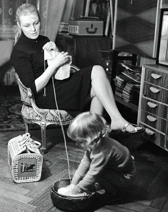 📸 Актриса Вия Артмане у себя дома. Спокойный вечер, вязание, рядом любимая дочь Кристиана. Фотография сделана в конце шестидесятых годов. Кино и голуби | Наш чат