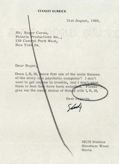 Во время съёмки фильма «2001 год : Космическая одиссея »Стэнли Кубри написал письмо руководству студии, где он интересуется, в курсе ли IBM (компания консультировала фильм), что они поддерживают фильм