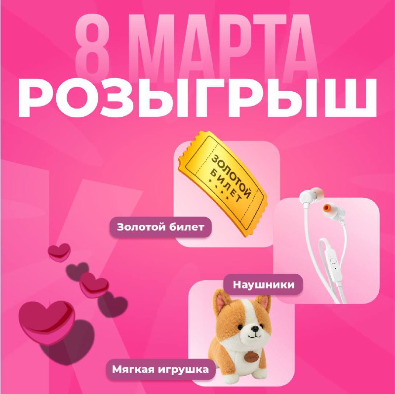 Дорогие дамы, извольте поучаствовать в нашем розыгрыше, посвящённому Международному женскому дню – 8 Марта 🌷 Специально для вас мы разыграем: 🎫 Золотой билет в кинотеатры «Киномакс» 🎧 Беспроводны