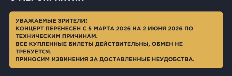 Уважаемые поклонники. Концерт в Волгограде перенесен на 2 июня 2026 по техническим причинам, не зависящим от группы. Все билеты действительны. Подробности будут позже. https://artzvezdy.ru/event/kip