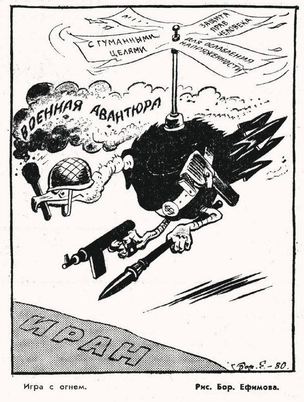 Так легендарный советский карикатурист Борис Ефимов освещал конфликт Ирана и США в далеком 1980 году. Актуальность не снижается