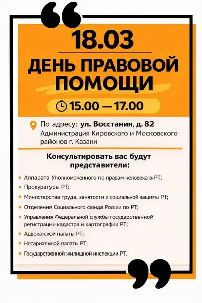 18 марта пройдёт День правовой помощи Как поделить имущество, разобраться в тарифах на ЖКХ, что нужно делать, если нарушены ваши права в трудовой сфере — с этими и другими вопросами вам помогут разоб