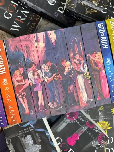 В этом наборе собраны все 6 пар из серии «Наследие богов» Рины Кент. Каждая со своей родной книгой, а на заднем плане тот самый готический университет, идеально передающий атмосферу истории. Всё вме
