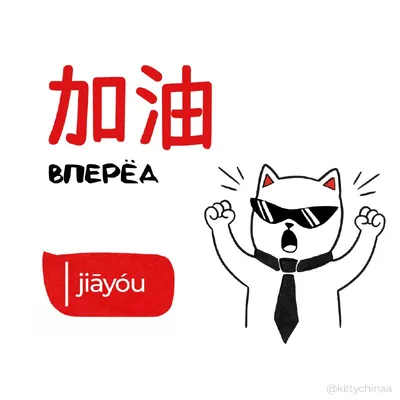 #вперёд – 加油 (jiāyóu) Похожие слова: 努力 (nǔlì) – Стараться 坚持 (jiānchí) – Упорствовать 别放弃 (bié fàngqì) – Не сдавайся 支持你 (zhīchí nǐ) – Поддерживаю тебя Пример употребления в предложении: 明天考试,加油! (