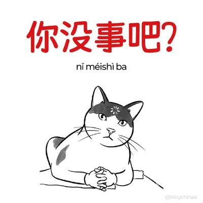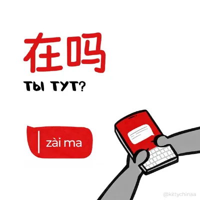 #ты_тут – 在吗?(zài ma) Похожие слова: 在不在 (zài bu zài) – Ты здесь или нет 有人吗 (yǒu rén ma) – Есть кто-нибудь? 上线了没 (shàngxiàn le méi) – Ты онлайн? 回一下 (huí yíxià) – Ответь, пожалуйста Пример употребл