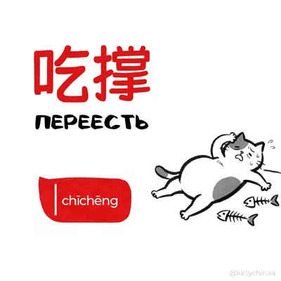 #переесть – 吃撑 (chīchēng) Похожие слова: 吃太多 (chī tài duō) – Съесть слишком много 饱了 (bǎo le) – Наелся 撑了 (chēng le) – Объесться 肚子很胀 (dùzi hěn zhàng) – Живот раздуло Пример употребления в предложен