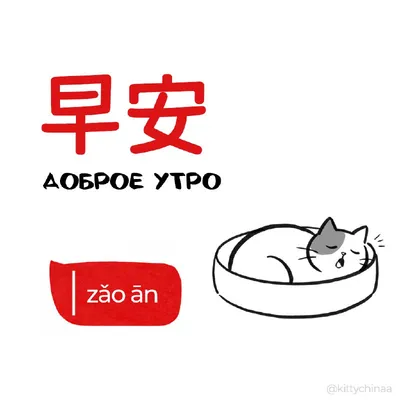 #доброе_утро – 早安 (zǎo ān) Похожие слова: 早上好 (zǎoshang hǎo) – Доброе утро (формальное) 早 (zǎo) – Утро 起床 (qǐchuáng) – Вставать с кровати 新的一天 (xīn de yì tiān) – Новый день Пример употребления в пре