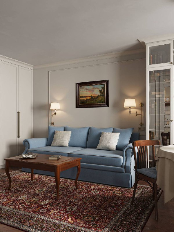 Классика в кирпичной хрущёвке Квартира в доме 1968 года для взрослой семейной пары. Задача от заказчицы: традиционный интерьер с классикой, объединённые кухня с гостиной и много систем хранения. При