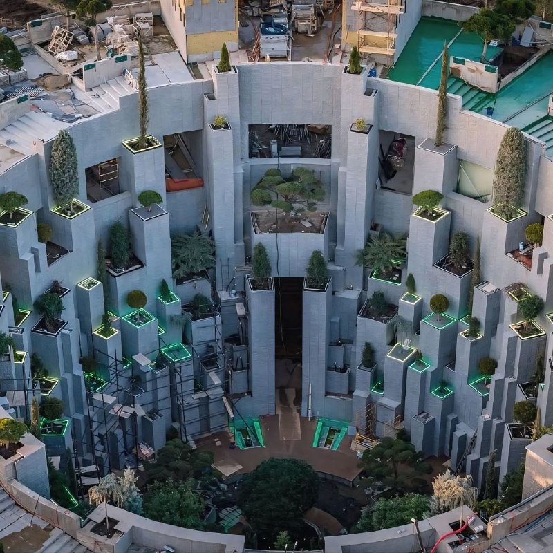 В «Парке облаков» в Краснодаре открылся новый арт-объект — бетонный цилиндр, уходящий глубоко в подземный сад 🌳 Он напоминает интерпретацию висячих садов Семирамиды, но только размещённых в котлован