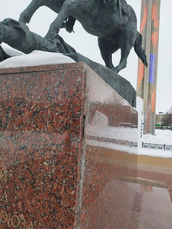 🔅Калужане переживают за состояние постамента памятника Г. К. Жукову на площади Победы. Здесь стали отходить гранитные плиты.