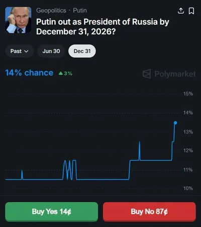 На Polymarket можно заработать 25% годовых в долларах за ставку на Путина. Достаточно поставить на то, что президент останется на посту до конца декабря. Легчайшая.