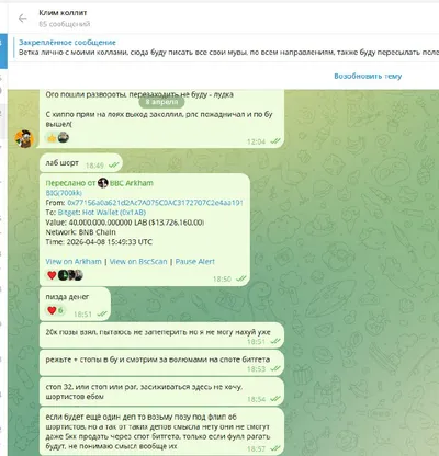 Лаб суету навёл Началось всё с того что они с командного коша вывели 70кк бачей и раскидали на фреш валлеты, далее я поставил все кошельки на все ончейн трекеры в приватке и дал инфу в чат, что если