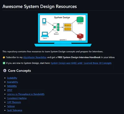 Отличные ресурсы по системному дизайну http://github.com/ashishps1/awesome-system-design-resources Что внутри: 1. Базовые концепции — теорема CAP, консистентное хеширование, масштабируемость, доступ