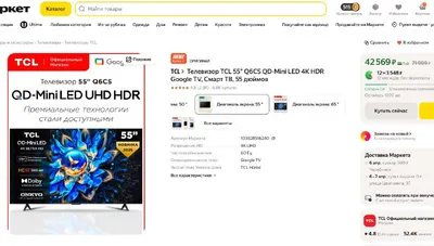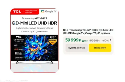 Самый дешевый Mini-led от TCL 65 дюймов с QD-Mini LED TCL 65" Q6CS Старая цена — 85.990₽ Новая цена — 59.999₽ Официальный магазин TCL Купить: https://market.yandex.ru/cc/94S2bp Цена товара может о