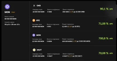OKX запускает очередной Flash Earn - MON https://www.okx.com/ru/earn/flash-earn Пофармить можно с 24 марта 14:00 по 29 марта MON 14:00 с помощью OKB BTC MON XAUT Лимиты на базовый акк ( если аккаунт