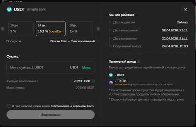 На Kucoin запустили неплохую акцию Boost Earn на 14 дней на USDT с APR под 15% и ETH под 13% https://www.kucoin.com/ru/earn — USDT (14 дней) 2.2% базовый APR + до 13% Boost в TRUTH — ETH (14 дней)