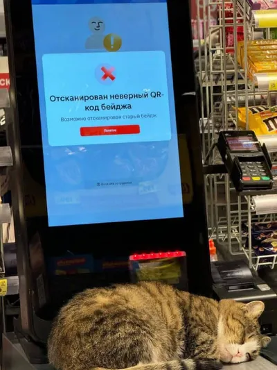 Россияне столкнулись с серьёзными проблемами на кассах самообслуживания. Пишут, что пользоваться кассами мешает какой-то QR-кот.