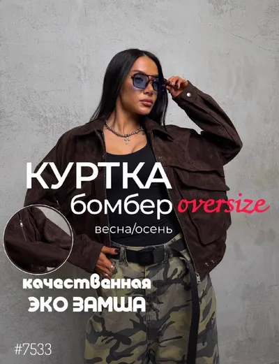 🍎🍎🍎🍎🍎🍎💣 забирайте Куртка -бомбер из эко замши Отличное качество Полный подклад Эко замша Размерная сетка: 🍎размер 42: Длина изделия 63 см Объем груди до 116 см Низ по резинке объем 11