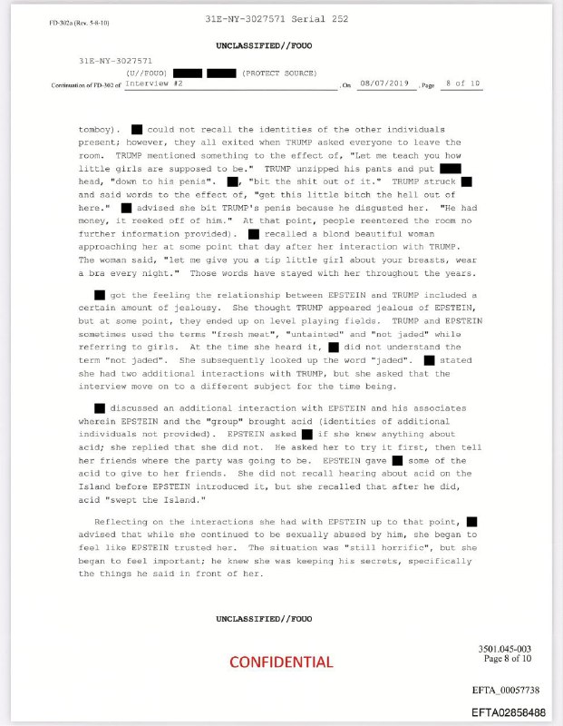❗️Интересные дела творятся за океаном. Американский Минюст внезапно вывалил в паблик протоколы допроса женщины, называющей себя одной из жертв педофила-сутенера Джеффри Эпштейна. И там, как говорится,