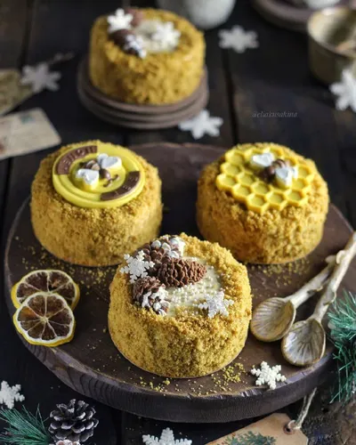 Пирожные-медовички 🍰🍯 Автор: Эля Кусакина eliakusakina На 10 шт. d ~10 см. Бисквит (выход теста 1,1 кг): 300 г яиц (6 шт. С1) 180 г сливочного масла 180 г сахара 180 г мёда 3 г соли 8 г соды 350