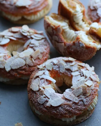 Пари-брест "Персик-Лимон" 🍑🍋 Автор: Ольга Никитина olya_cakes Рецепт рассчитан на 20 шт, кольцо d = 8-10 см. Заварное тесто: Мука - 150 г Молоко - 125 г Вода - 125 г Масло сливочное 82,5% - 75 г