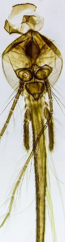 🔬 Голова самки комара под микроскопом Голова самки комара — это сложный инструмент для поиска и питания кровью. Её ротовой аппарат, похожий на иглу, позволяет проколоть кожу и высасывать кровь. Чувс