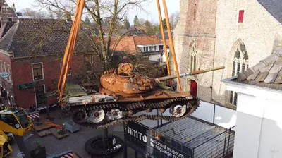 Подбитый в районе Бучи российский танк выставлен в нидерландском городе Грунло. Предоставлен Национальным военно-историческим музеем Украины (Минобороны).