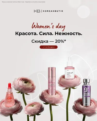 Ваша корзина дождалась этого момента! 🌸 С 1 по 9 марта запускаем скидки -20% на весь ассортимент! Это лучший повод собрать подарки для всех близких, обновить косметичку или попробовать новинки, кот