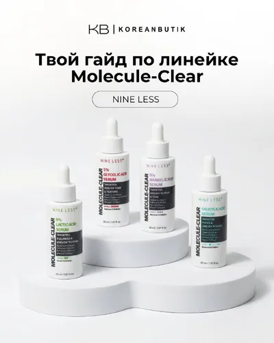 Теперь подробнее про линейку от Nine Less! Это 4 эффективные сыворотки с разным уровнем отшелушивания. Сыворотка с салициловой кислотой 👛 Проникает глубоко в поры, борется с черными точками и предо