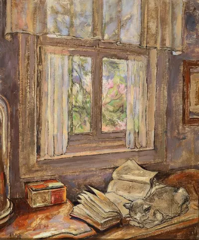 «Интерьер со спящей кошкой перед окном» Elisabeth Wolf (1873–1964) 💌 Котоискусство