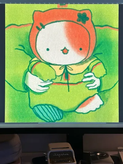 У меня в соцсети с картинками есть видео 2023 года с процессом этой картинки акварелью с карандашами. Тогда я делала работы как в традишке, так и в дидже. И мне вспомнилось, что когда-то я в целом рис