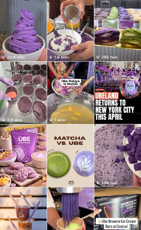 🍠 Убе — главный фуд-тренд за океаном прямо сейчас. Несмотря на то, что «фиолетовый батат» является неотъемлемой частью филиппинской кухни уже как минимум 400 лет, раз в несколько лет этот корнеплод «