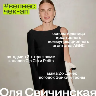 #велнесчекап Задаем вопросы моей дорогой подруге Оле Свичинской, основательнице креативного коммуникационного агентства AGNC, со-админу двух телеграмм каналов Cin Cin и Petits и маме двух дочек пого