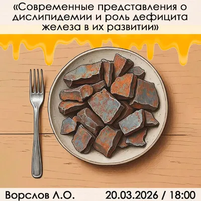 20 марта (пятница) 18:00 по Москве «Современные представления о дислипидемии и роль дефицита железа в их развитии» ВОРСЛОВ Л.О., к.м.н., кардиолог, Главный врач Клиники профессора Калинченко. Участ