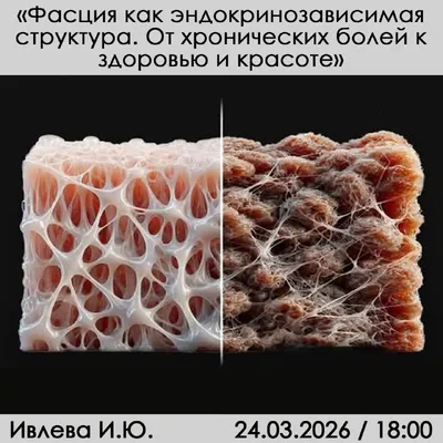 24 марта (вторник) 18:00 по Москве "ФАСЦИЯ КАК ЭНДОКРИНОЗАВИСИМАЯ СТРУКТУРА. ОТ ХРОНИЧЕСКИХ БОЛЕЙ К ЗДОРОВЬЮ И КРАСОТЕ" Ивлева И. Ю., врач - терапевт, реабилитолог клиники профессора Калинченко, зам.
