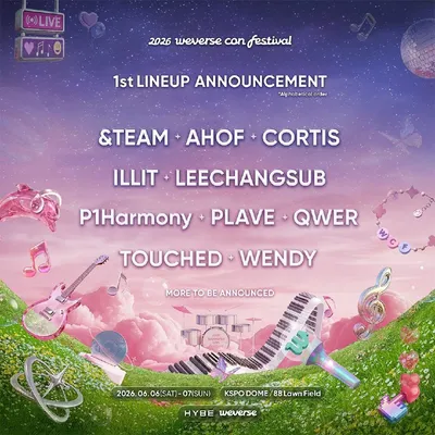 Объявлен первый состав Weverse Con Festival 2026 &TEAM AHOF CORTIS ILLIT Lee Chang Sub P1Harmony PLAVE QWER TOUCHED WENDY Фестиваль пройдет 6 и 7 июня. #nws #general_nws