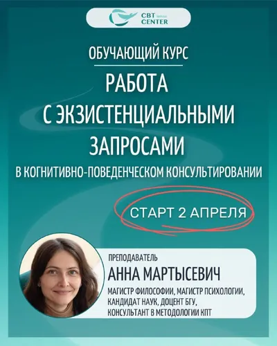 ❤️ Коллеги, открыта регистрация на курс «Работа с экзистенциальными запросами в когнитивно-поведенческом консультировании», который пройдет в Минском центре КПТ с 2 по 30 апреля 2026 по четвергам 🌿