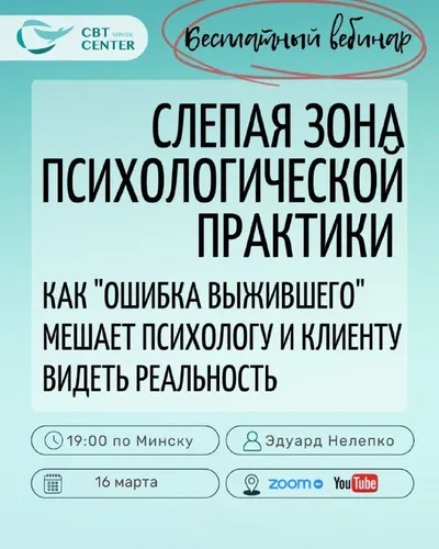 😂 Друзья, в понедельник (16 марта в 19:00) на платформе Zoom (с трансляцией в YouTube) пройдёт БЕСПЛАТНЫЙ вебинар "Слепая зона психологической практики или как "Ошибка выжившего" мешает психологу
