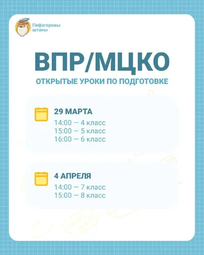 ❇️ Уже совсем скоро — открытые уроки по подготовке к ВПР/МЦКО ❇️ 29 марта и 4 апреля разберём задания, которые помогут ребёнку увереннее справиться с проверочными работами и избежать типичных ош��бок