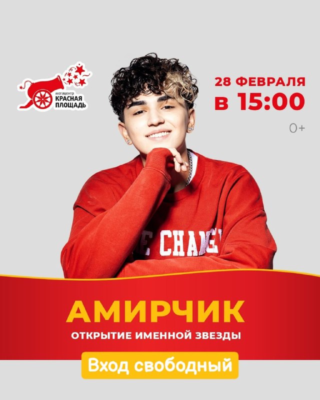 Торжественное открытие именной звезды певца Амирчика на «Аллее славы». Сегодня в 15:00, в центральном атриуме Мегацентра «Красная Площадь», ул. Дзержинского, 100 Вход СВОБОДНЫЙ Возраст 0+ 😆 Меропр
